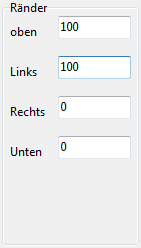 Der Befehl Ränder erlaubt die Festlegung der Ränderstärke für die Zieldateien.