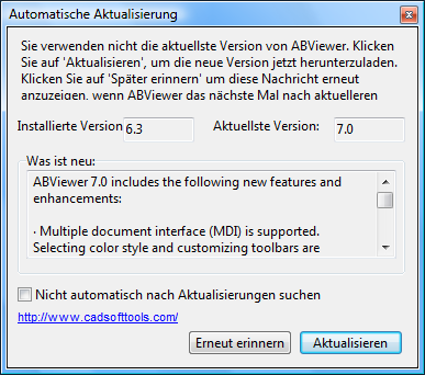 Nach Aktualisierungen suchen [Hilfe -> Nach Aktualisierungen suchen] richtet die automatische Überprüfung für neue Programmversionen ein.