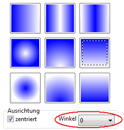 •Gradient Vorschau - im mittleren Teil des Fensters gibt es 9 Gradient-Beispiele, die auch Vorschau-Funktion erfüllen. Sie zeigen den Ansicht des Gradienten entsprechend den aktuel gewählten Parameter.