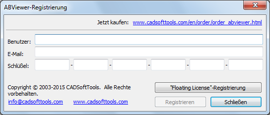 2.Im Dialogfenster CADEditorX User Interface-Registrierung geben Sie die Registrierungsdaten ein:
