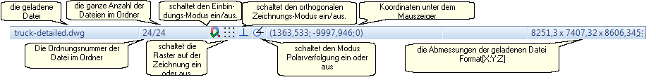 Die Statusleiste befindet sich immer im unteren Teil des Programmfensters und enthält zusätzliche Informationen und Funktionsweisen: