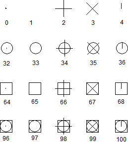 Sets style of points display at the drawing. The accepted values are 0, 1, 2, 3, 4, 32, 33, 34, 35, 36, 64, 65, 66, 67, 68, 96, 97, 98, 99, 100.