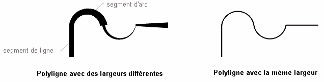 Une polyligne peut comporter des segments de lignes et des segments d'arcs. Tous ces segments sont traités comme un seul objet. La largeur de ligne de tous ces segments peut être différente.