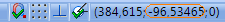 Les valeurs de coordonnées peuvent être positives ou négatives. On doit entrer la valeur correcte (voyez les coordonnées marquées par le cercle rouge dans la barre d'état suivant) :