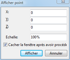 Cacher la fenêtre après avoir procédé - si cette option est cochée la boîte de dialogue se ferme dès que le point est trouvé et affiché. Si l'option n'est pas cochée, on peut entrer des paramètres plusieurs fois pendant la même session.