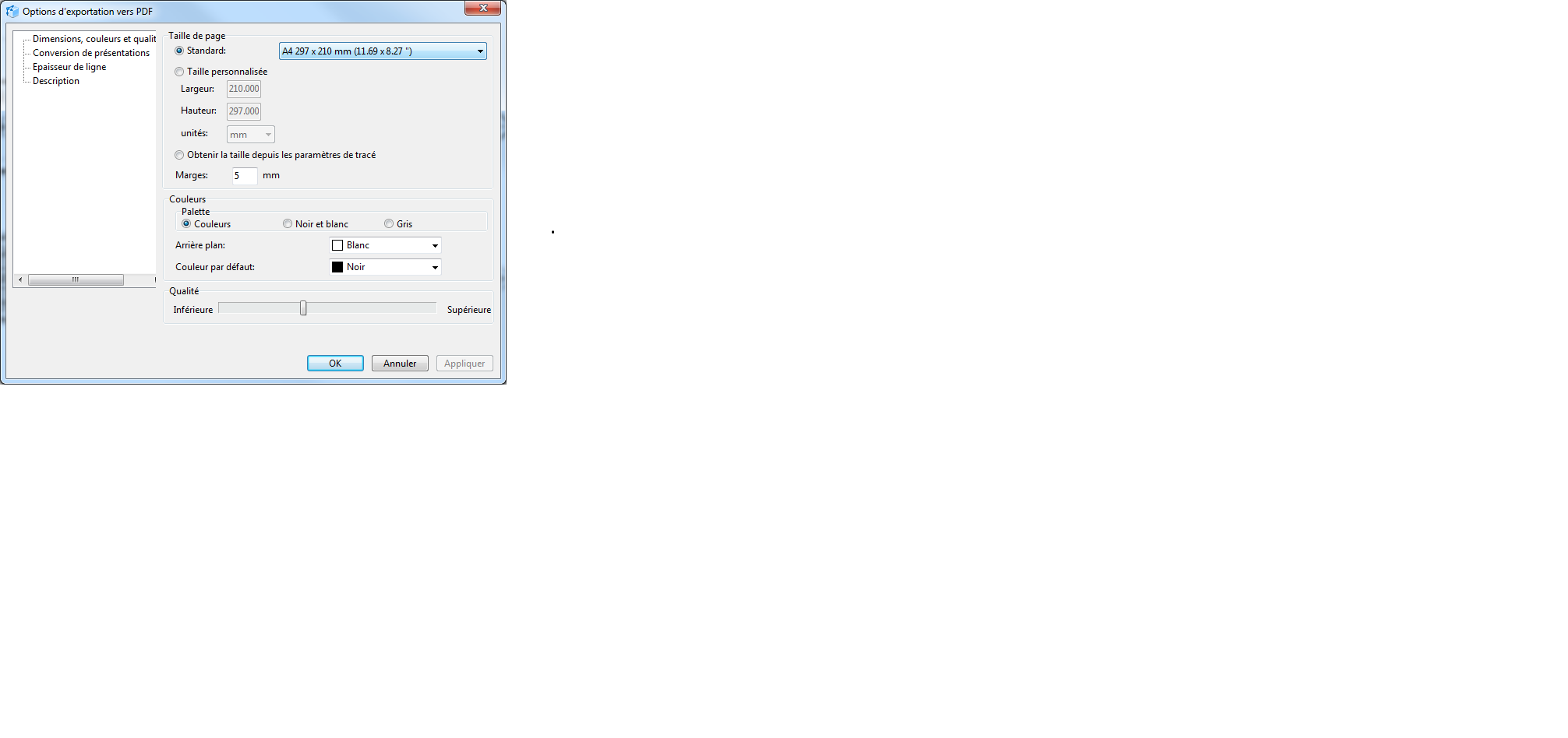 Lors d’exportation en PDF, des réglages supplémentaires sont disponibles :