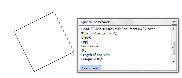 (load "С:\Users\USER_NAME\Documents\CADEditorX 10\Demos\Lisp\sqr.lsp") |