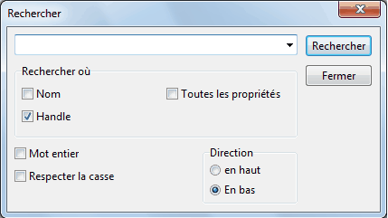 Handle. Le texte entré n'est recherché que par la valeur Handle de tous les objets.