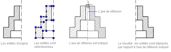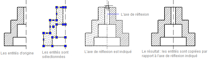 Le déplacement de miroir ou la copie des entités sélectionnés par rapport à un axe indiqué. Il permet de créer des objets symétriques.